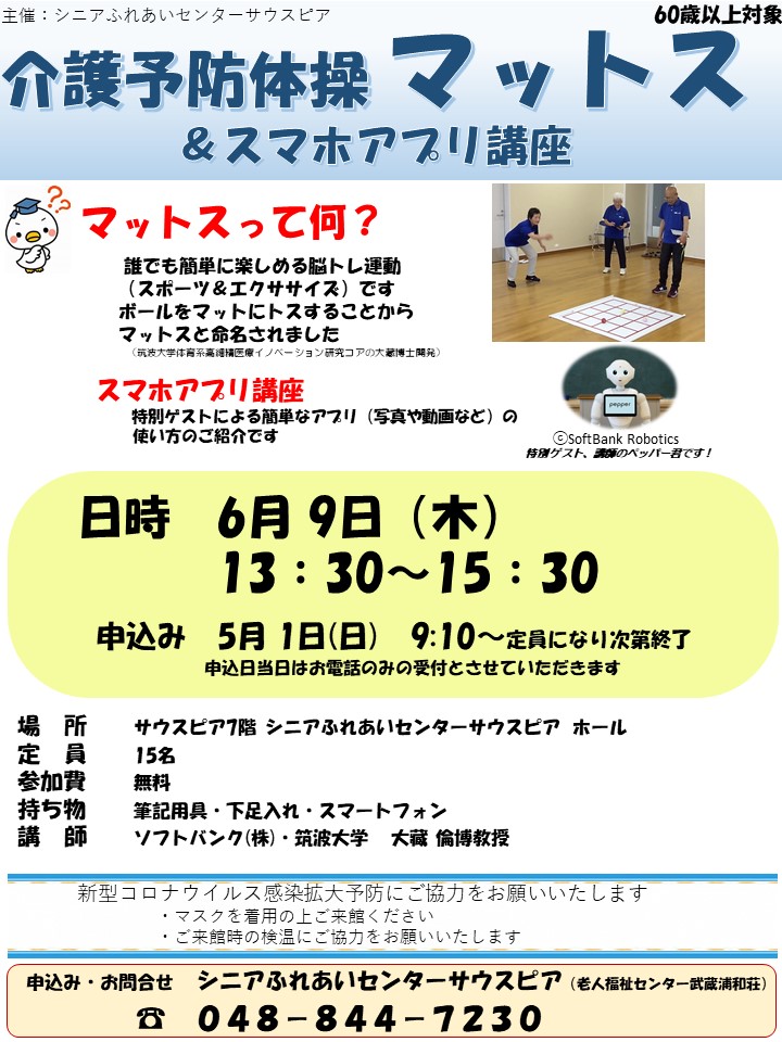 複合公益施設サウスピア介護予防体操マットス&スマホアプリ講座 6月9日開催。