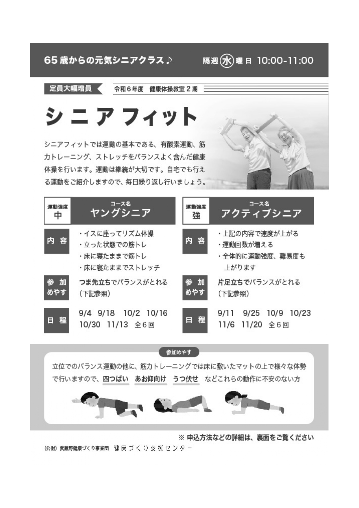 シニアフィット 第2期9~11月実施分 健康づくり支援センター 最新情報健康づくり支援センタ。