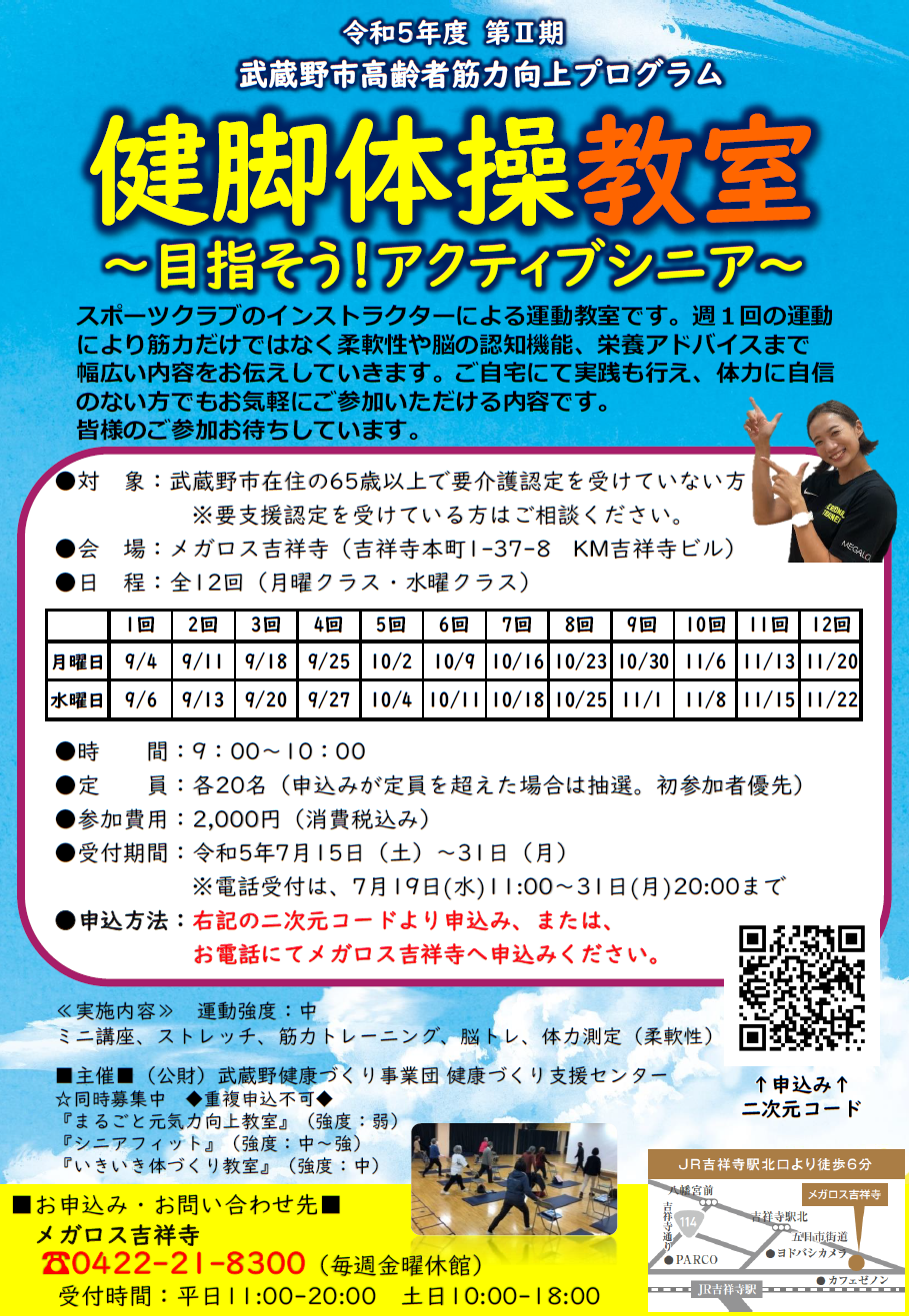 健脚体操教室~目指そう!アクティブシニア~ 第2期9~11月実施分 健康づくり支援センター 最新情報健康づくり支援センタ。