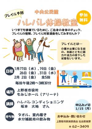 中央公民館「ハレバレ体操教室」参加者募集について - 上野原市教育委員会 - 上野原市公式ホームページ 社会教育課。