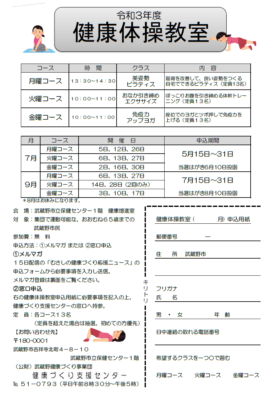 4月「健康体操教室」開催のお知らせ -公式 老人福祉センター若竹園。
