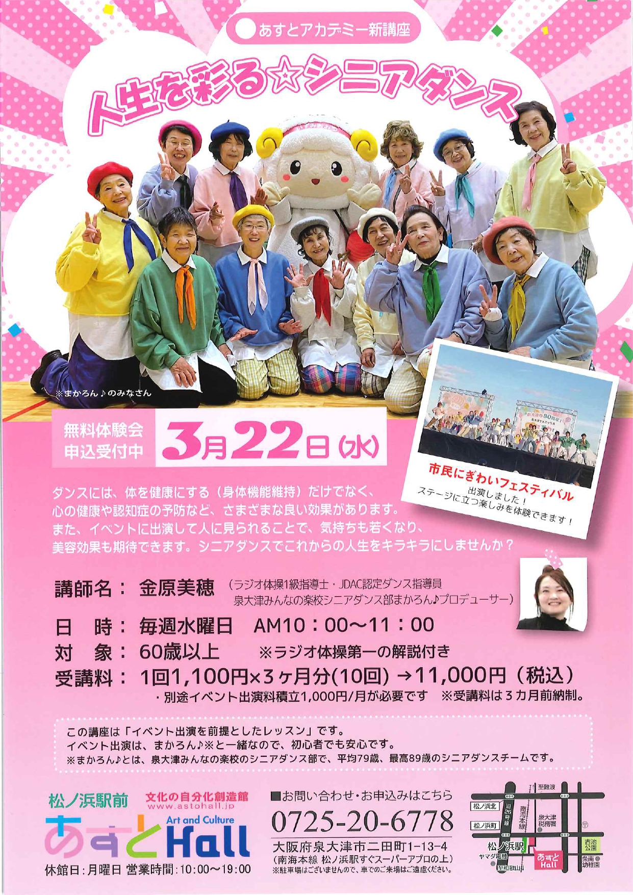 イベント 3月からスタート!毎週水,金,土曜日「楽しく、元気に、シニアライフ!」 主催:たんぽぽの会長岡京市民活動サポートセンタ。