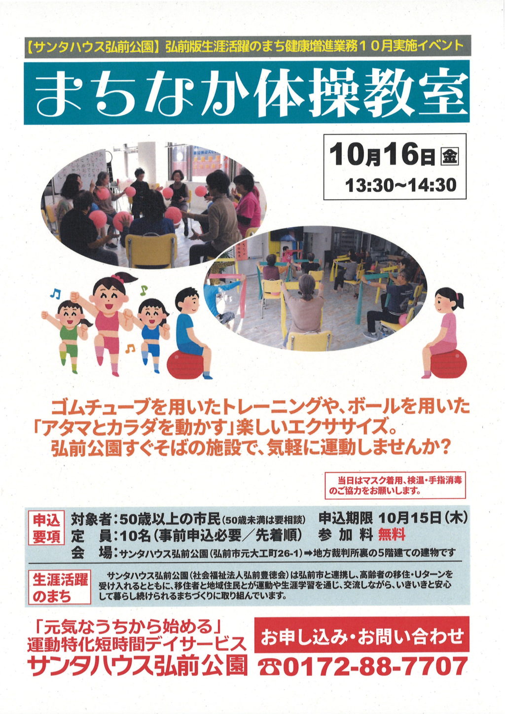 まちなか体操教室 参加者募集 弘前版生涯活躍のまち健康増進モデル構築事業弘前ぐらし 青森県弘前市の移住・交流・UJIターン応援サイト。