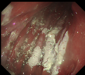 食道カンジダ症の症例写真と解説夙川内視鏡内科まえだクリニック 西宮市で痛くない胃カメラ・下剤を飲まない大腸カメラを土曜日曜も実施。