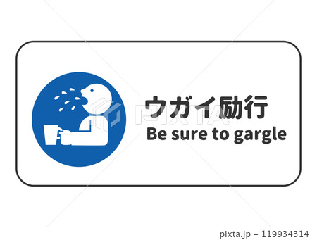 ウガイ励行を指示するベクター形式の安全標識ピクトグラム 日本語英語表記付き のイラスト素材119934314- PIXTA。