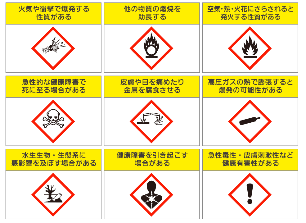 化学物質のラベルに使用できるピクトグラム大阪シーリング印刷株式会社シール・ラベル・ステッカー印刷のOSP 大阪シーリング印刷。