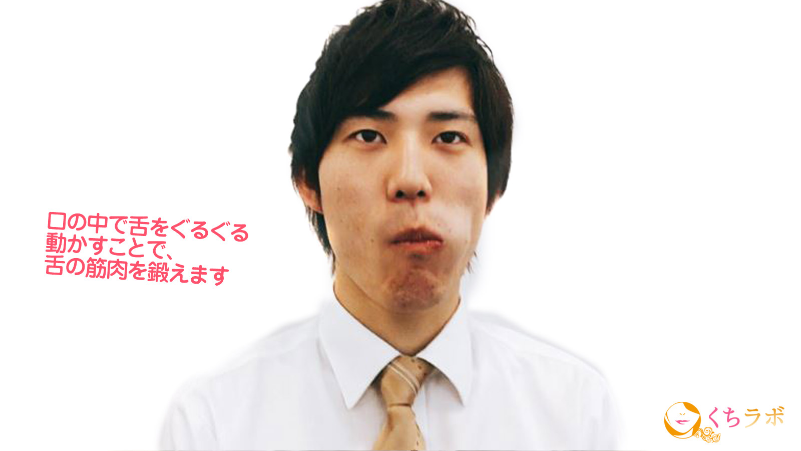 頬の膨らませトレーニング自主トレばんく 筋トレ・ストレッチ・リハビリのイラスト資料。