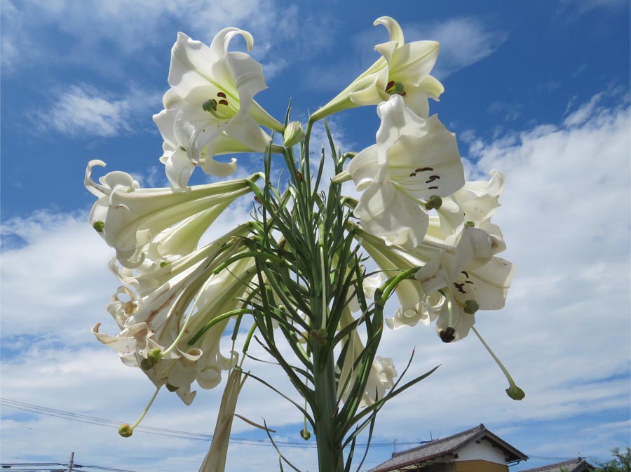 1本のユリから30輪以上の花が咲く 赤坂台の栢本さん宅泉北・金剛さやまコミュニティ。
