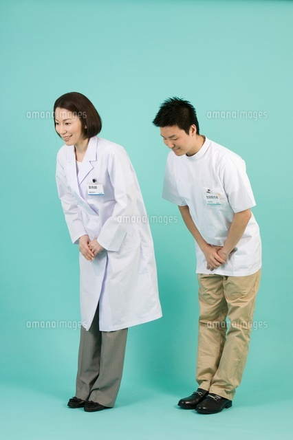 並んでお辞儀をする薬剤師と登録販売者 11002058202 の写真・イラスト素材アマナイメージズ。