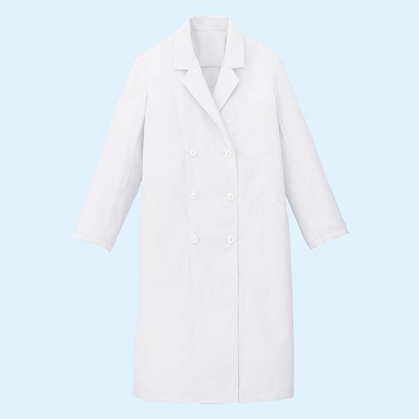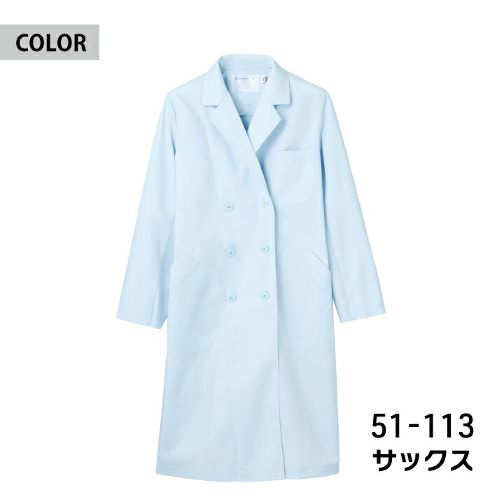 薄手 エコ素材 白衣 医療 レディス 長袖 ダブルボタン 女性用 ドクターコート 住商モンブラン 51-111 51-113 51-115 ホワイト白 サックス 青 水色 ピンク 大きいサイズ 3l 4l 女性用 病院 クリニック 医師 研修医 薬剤師 登録販売者 ドラッグストア 薬学生 医療介護51。