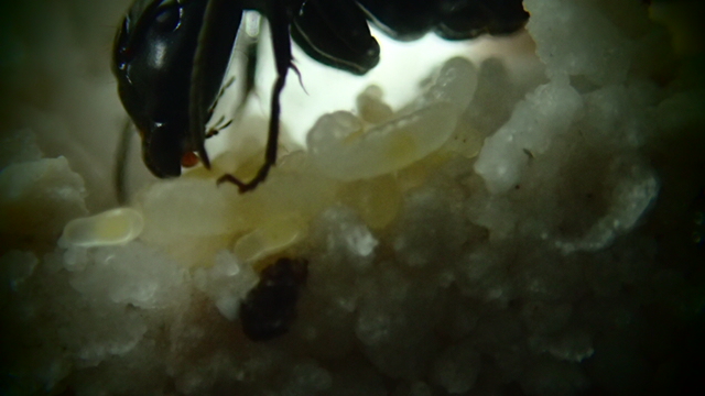 ムネアカオオアリの卵が幼虫になりました!大田原市ふれあいの丘自然観察館。