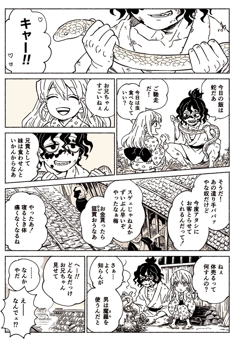 アプロ on X: "妓夫太郎が美しければ、まだ陰間になる道もあっただろう。 生まれながらに梅毒に犯された醜い彼には、身体を売るという選択肢すら無かった。地獄から抜け出す一片のチャンスすらも与えられなかったのだ。 鬼になるしかない。 https:t.co HFRItW9ivf"X。