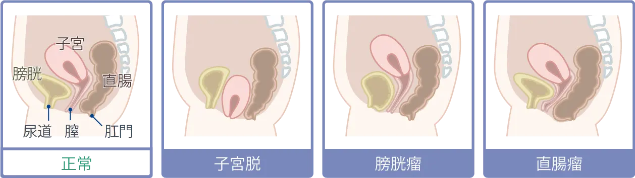 骨盤臓器脱 子宮脱 子宮が痛い、出血がある。おしっこが漏れるなど 出産経験、肥満、加齢、閉経後、力仕事など - 慈恵病院無痛分娩や子宮脱 などお気軽にご相談ください│熊本市の産婦人科。