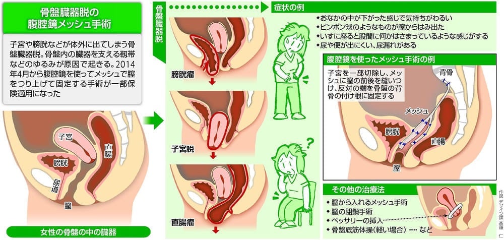 子宮脱の最新治療「腹腔鏡下仙骨膣固定術」とは-子宮脱の治療はリング挿入や骨盤底筋体操だけではないメディカルノート。