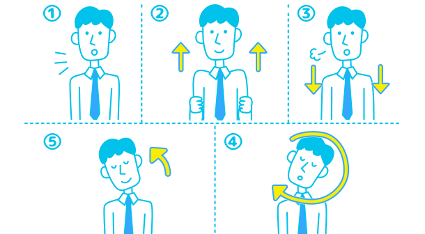 肩すくめ体操自主トレばんく 筋トレ・ストレッチ・リハビリのイラスト資料。