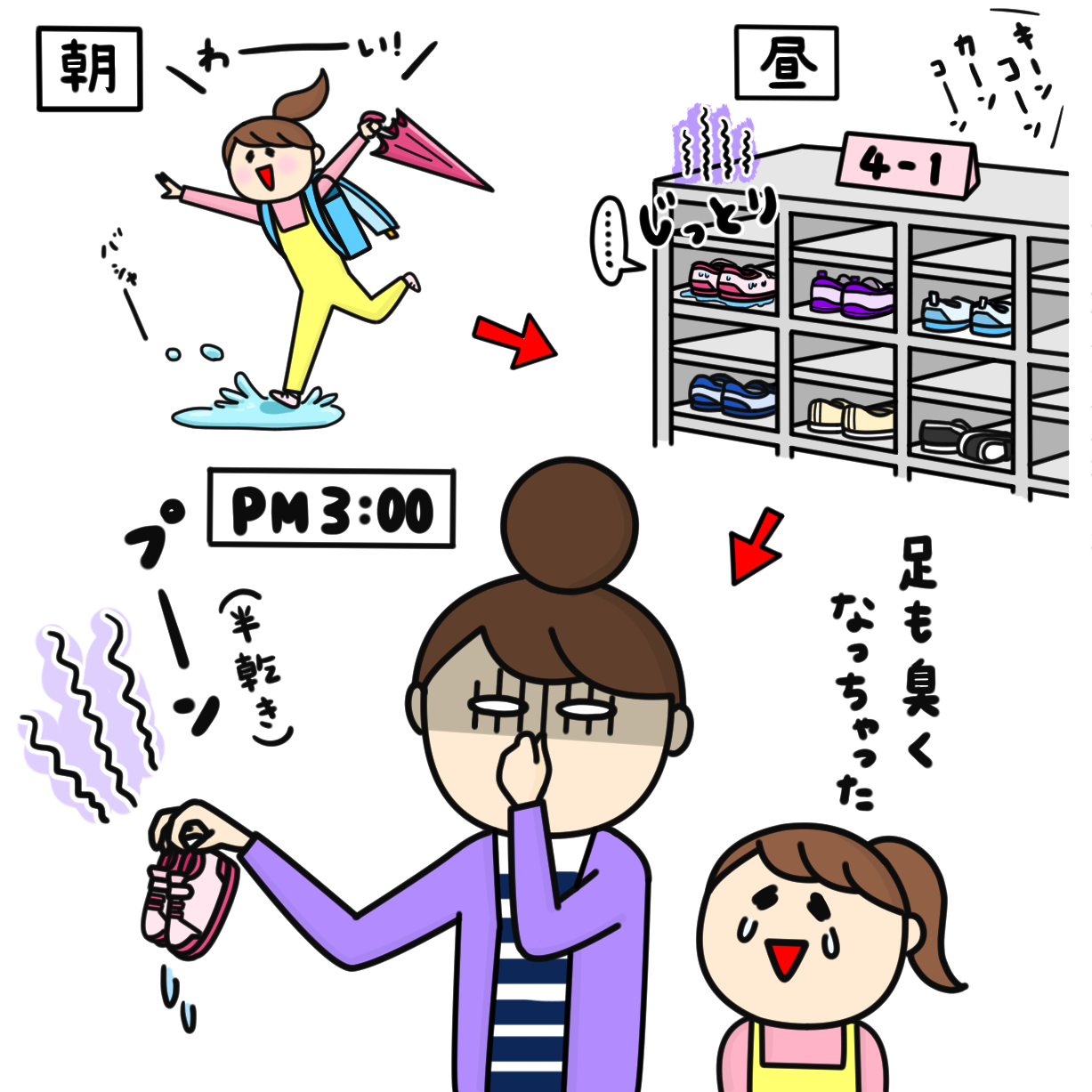 学校から帰ってきた子どもの足👣ニオイやベタつきが気になる 🙄💦 ドさざなみ🌟 さんのマンガツイコミ 仮。