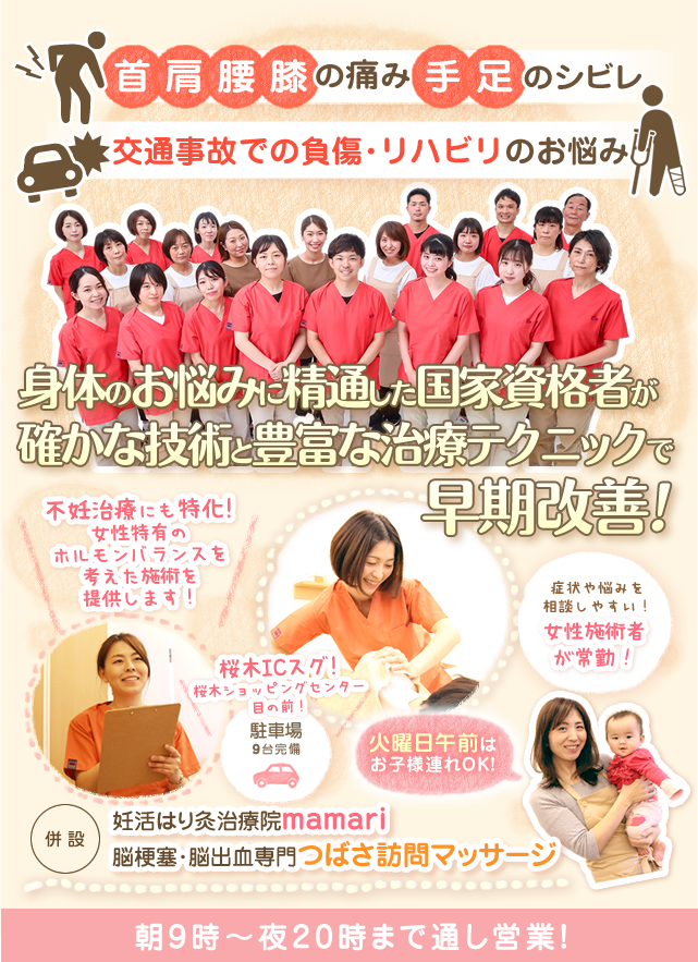 ゆ〜かり整骨院グループの整体メニュー横浜市・鎌倉市大船のゆーかり整骨院グループ。