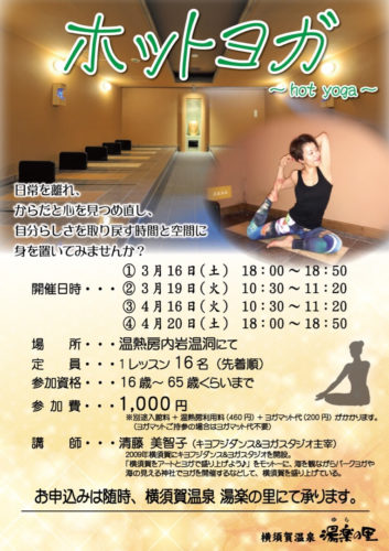 毎週火曜日 岩盤ヨガ - SPA&HOTEL水春 松井山手京都府京田辺市のスーパー銭湯・ホテル・岩盤浴・サウナ。