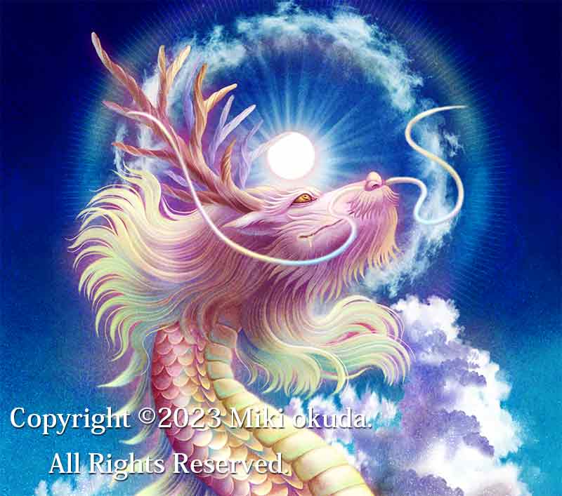 青龍・上昇気流 SSサイズ│かっこいい龍イラスト│龍の絵スピリチュアル│龍絵画│幸運を呼ぶ絵画 │ジクレー版画光の幻想アート・観稀舎 みきしゃ 画家・奥田みきの絵画通販ショップ仏画・日本の神様・龍神画 ・スピリチュアル。