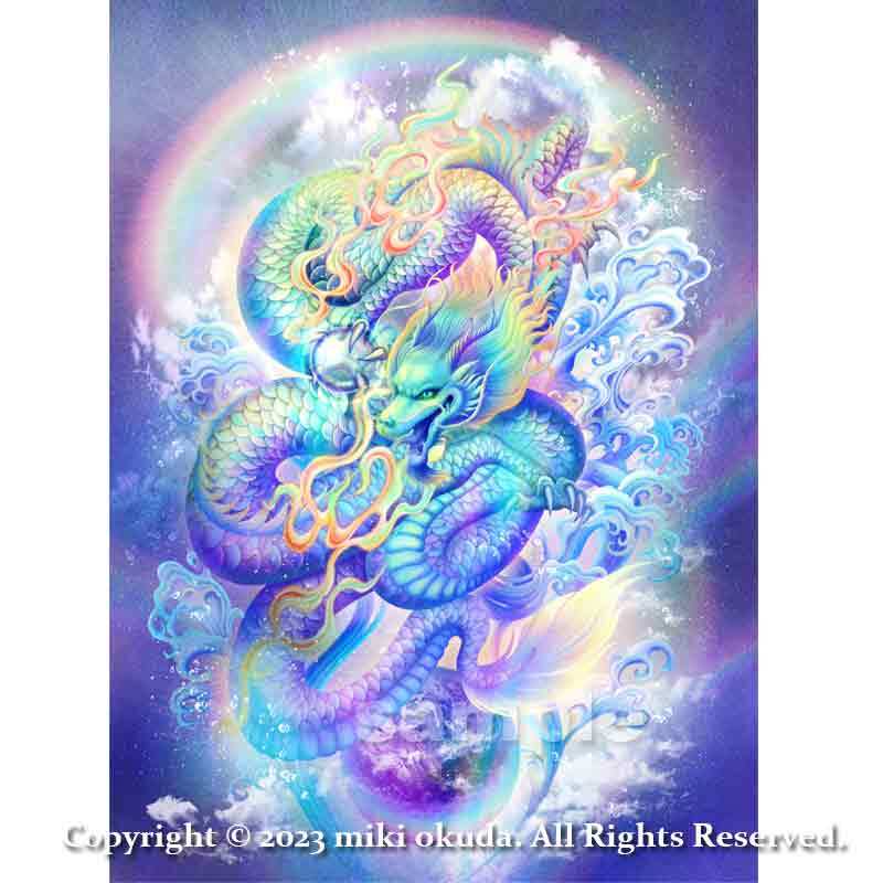 虹龍王 S~Mサイズ│かっこいい龍イラスト│龍の絵スピリチュアル│龍絵画│幸運を呼ぶ絵画 │ジクレー版画光の幻想アート・観稀舎 みきしゃ 画家・奥田みきの絵画通販ショップ仏画・日本の神様・龍神画 ・スピリチュアル。