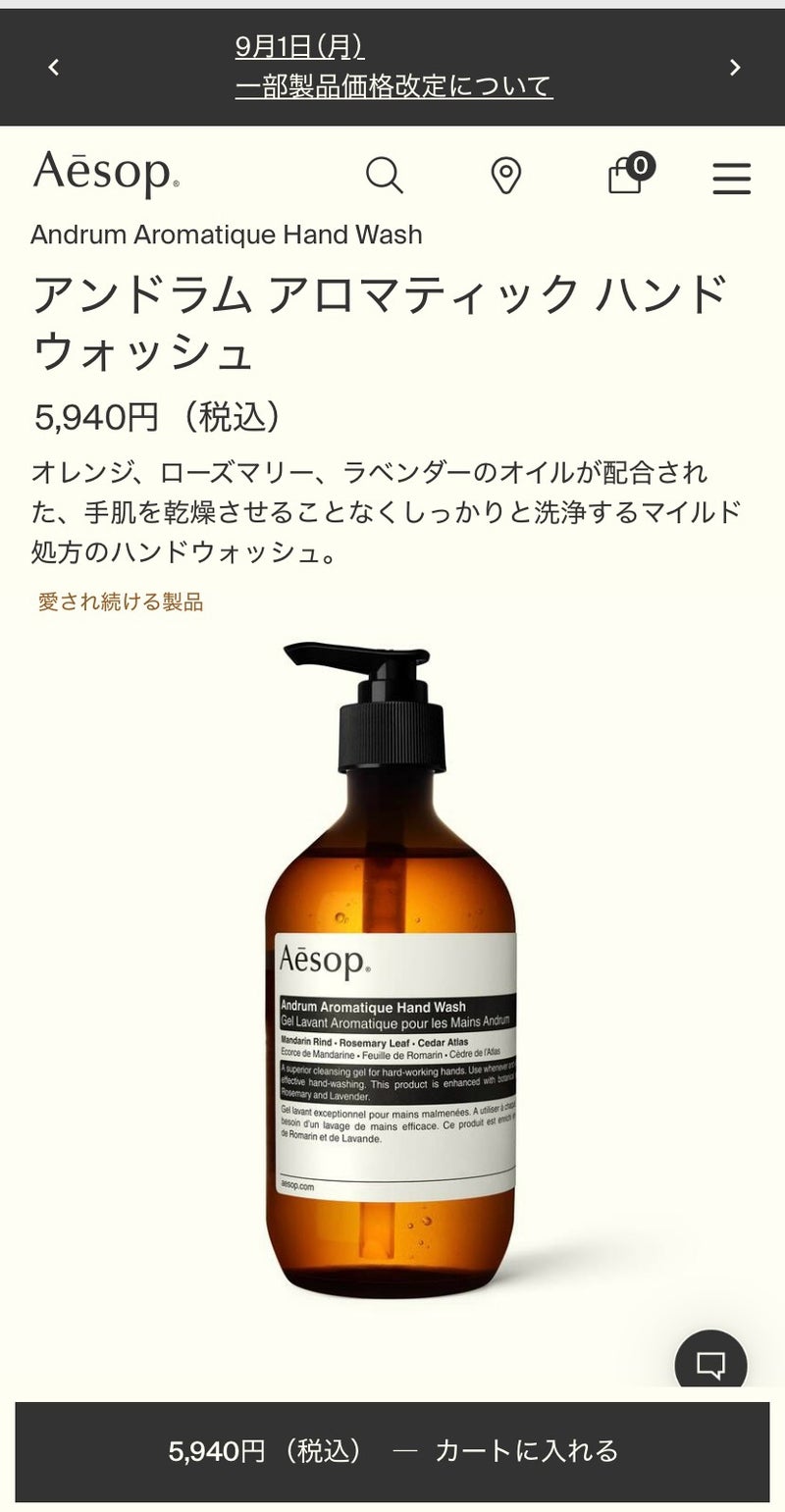アンドラム アロマティック ハンドウォッシュAesopの口コミ - 高級ホテルにおいてある ハンドソープの香り by ピーLIPS。