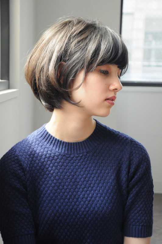 出産前に結べる長さでバッサリとハイライトボブに阿佐ヶ谷でショートヘアに特化した美容師 石井さんのショートヘアページ。