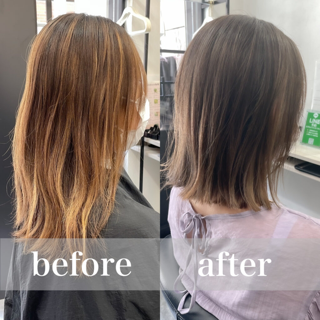 産後のヘアケアのお悩み解決! 10年以上通ってくれている 常連さんが産後に来店してくれました。髪のお悩み•多毛で髪のボリュームやパサつきが気になる •毛先が跳ねやすいので纏まるようにしたい •産後で育児しやすい髪型にしたい ↓↓解決策↓↓•半年ぶりで増え。