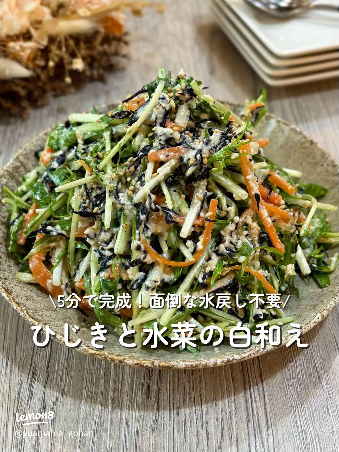レシピはこちら↓ その他のレシピは @meri.recipe 白和えって美味しいんだけど、 ひじきの水戻しも豆腐の水切りも時間がかかるでもこれならどっちも解消!😆 10分でできます✨ ひとつ注意事項があって、 『水戻し不要』のひじきを選んで⚠️ 詳しくはポイントのところに。