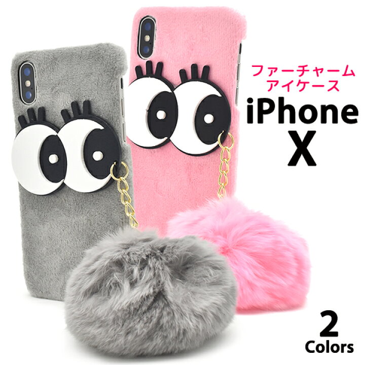 楽天市場 送料無料 iPhone X iPhone XS用ゆらゆらファーチャームアイケース アイフォン テン apple アップル マホカバースマホケースiPhoneXケース バックカバー バックケース 女の子 女性 女子 ファー もこもこ モコモコ ふわふわ 目玉 パッチリ お目目キョロキョロ。