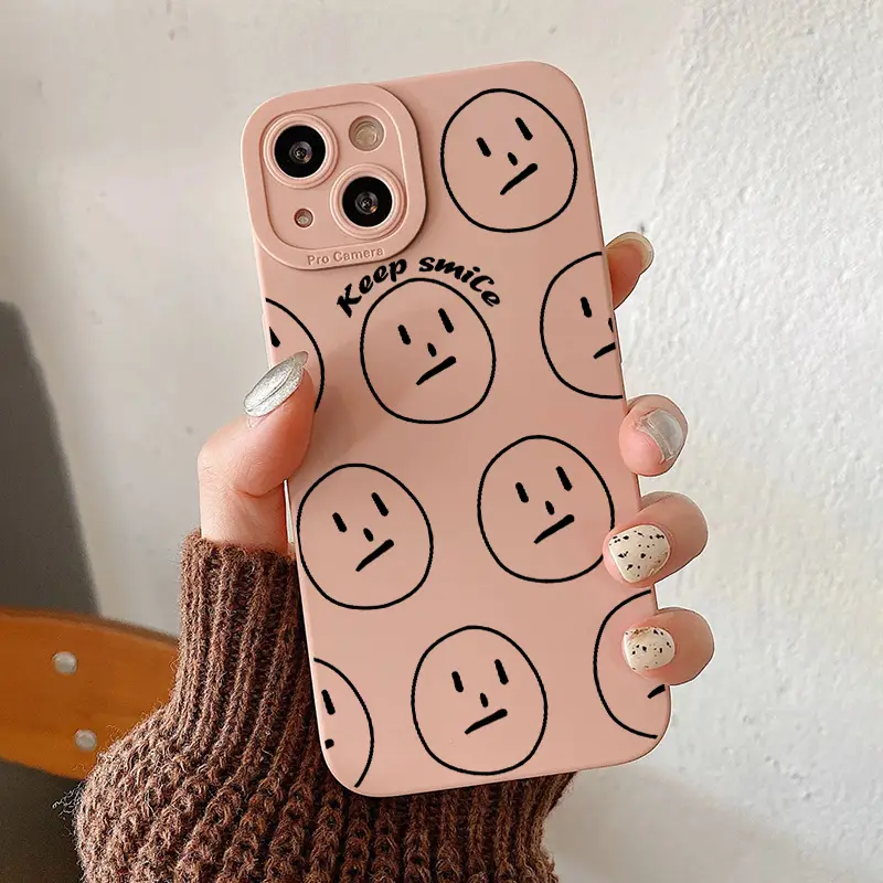 tf2818 悲しさ 黒い線で描かれた悲しい顔 ピン ショック フォンケース英語タイトル:不幸なパターングラ - Temu Japan。