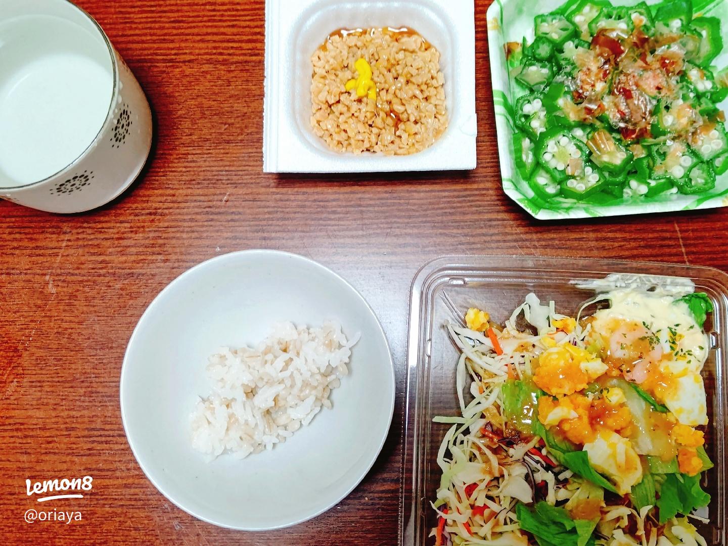 先日の夜ご飯🍴  確かこの日は夫が出張で 2泊いなかった時。  何もしたくなかったので ハンバーグだけ作りました🙌  丼にしちゃうと血糖値上がりやすいので 少しでもお野菜を 。  丼の上にもお野菜を多めに。  あとはなるべくゆっくり食べるしかないかな。