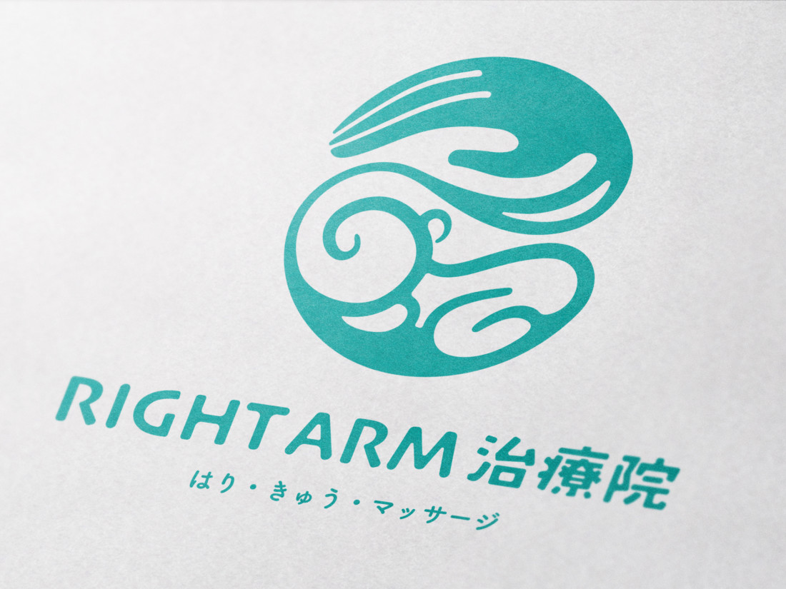 店舗ロゴデザイン:RIGHT ARM 治療院沖縄 デザイン事務所 企画制作 BRIDGE。