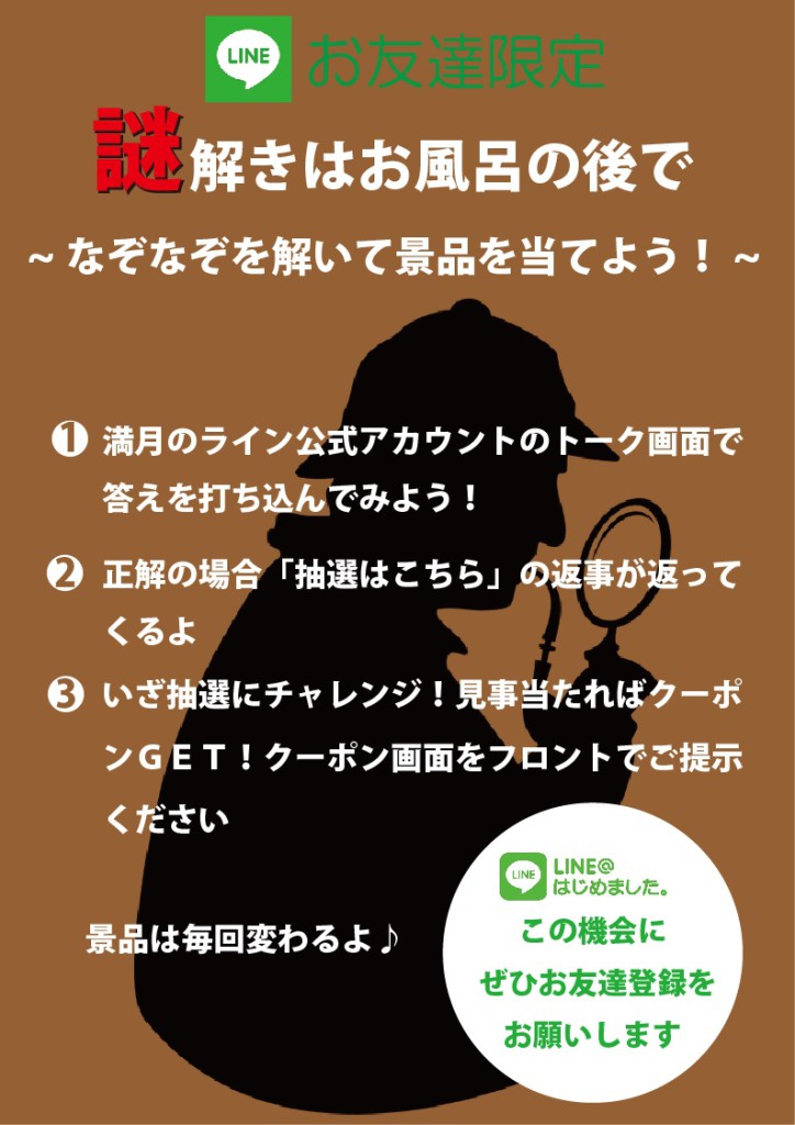 毎月26日はお風呂の日。なぞなぞの更新日です♪ 天然温泉満月 銭湯 サウナ 上新庄 駅近 炭酸泉 癒される 100%の天然温泉 東淀川区唯一の天然温泉汗をかいたあとは。