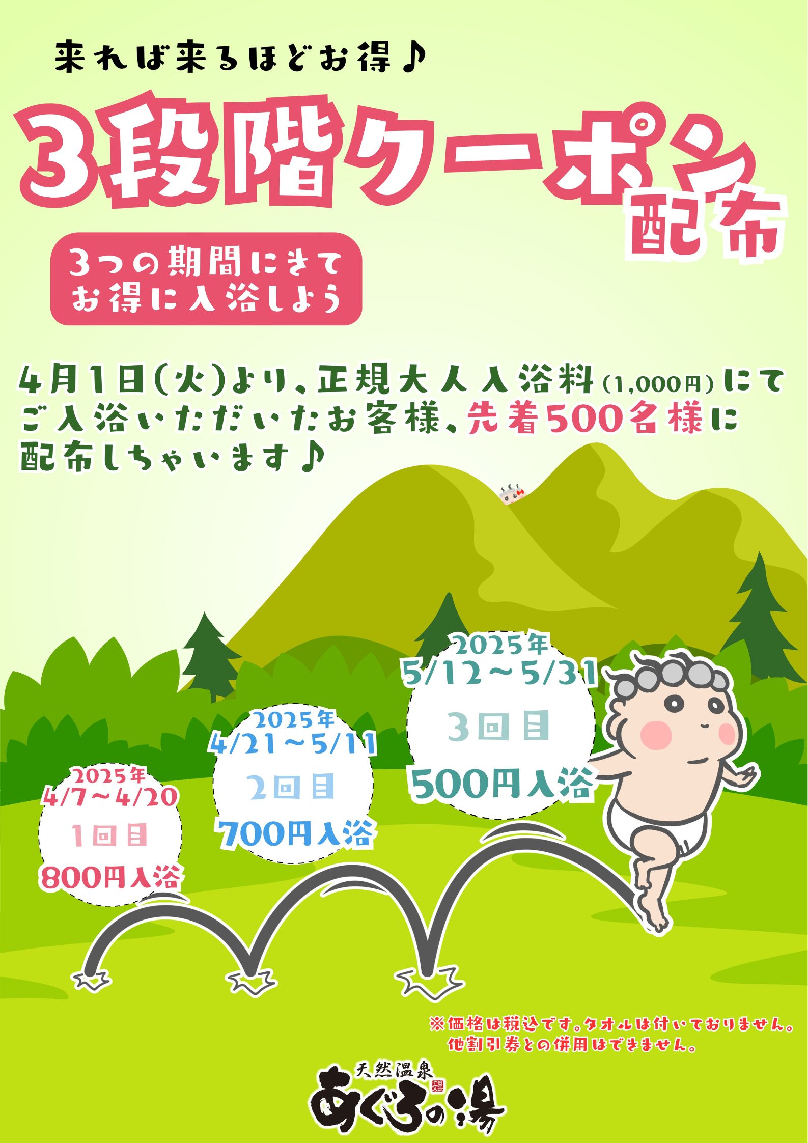 クーポン割引の適用につきまして杉戸天然温泉 雅楽の湯うたのゆ埼玉の日帰り温泉杉戸町。