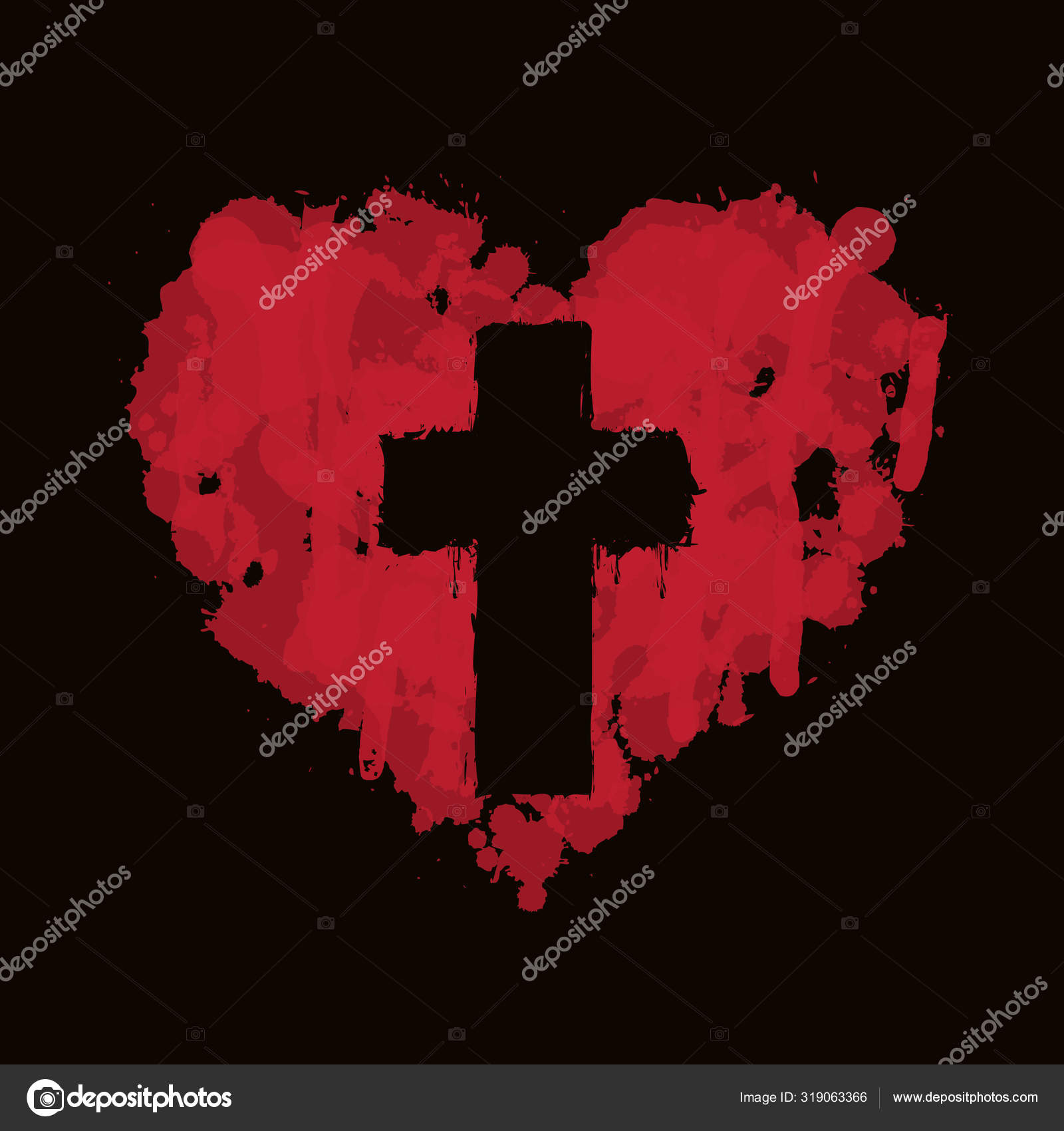 抽象的な赤いハートの中のキリスト教徒の十字架 ストックベクター ©paseven 319063366。