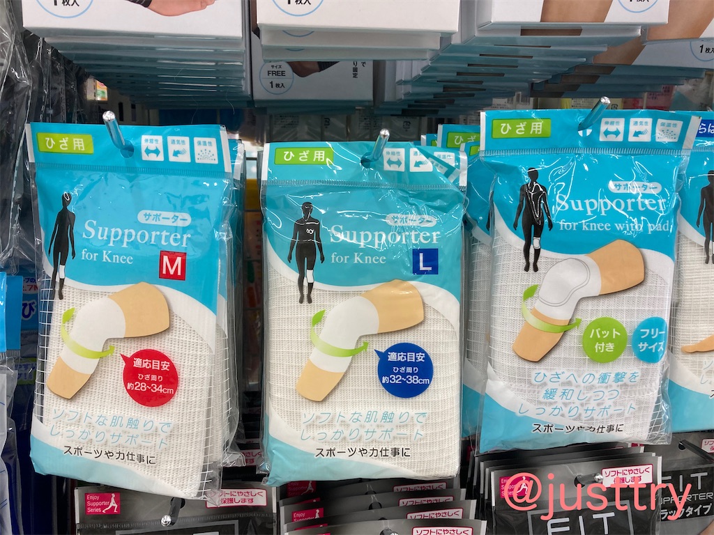 ダイソーのヒザ用サポーターは使用方法やサイズの目安が分からないが使ってみた!コレクトサイズ。