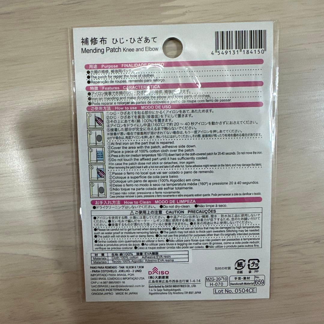 ダイソー 日本製 補修布ひじあて アイロン接着タイプ 2枚入り 未開封 - メルカリ。