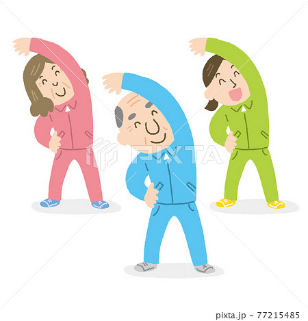 健康のためにラジオ体操をする人 男女の高齢者と若い女性のイラスト素材77215485- PIXTA。