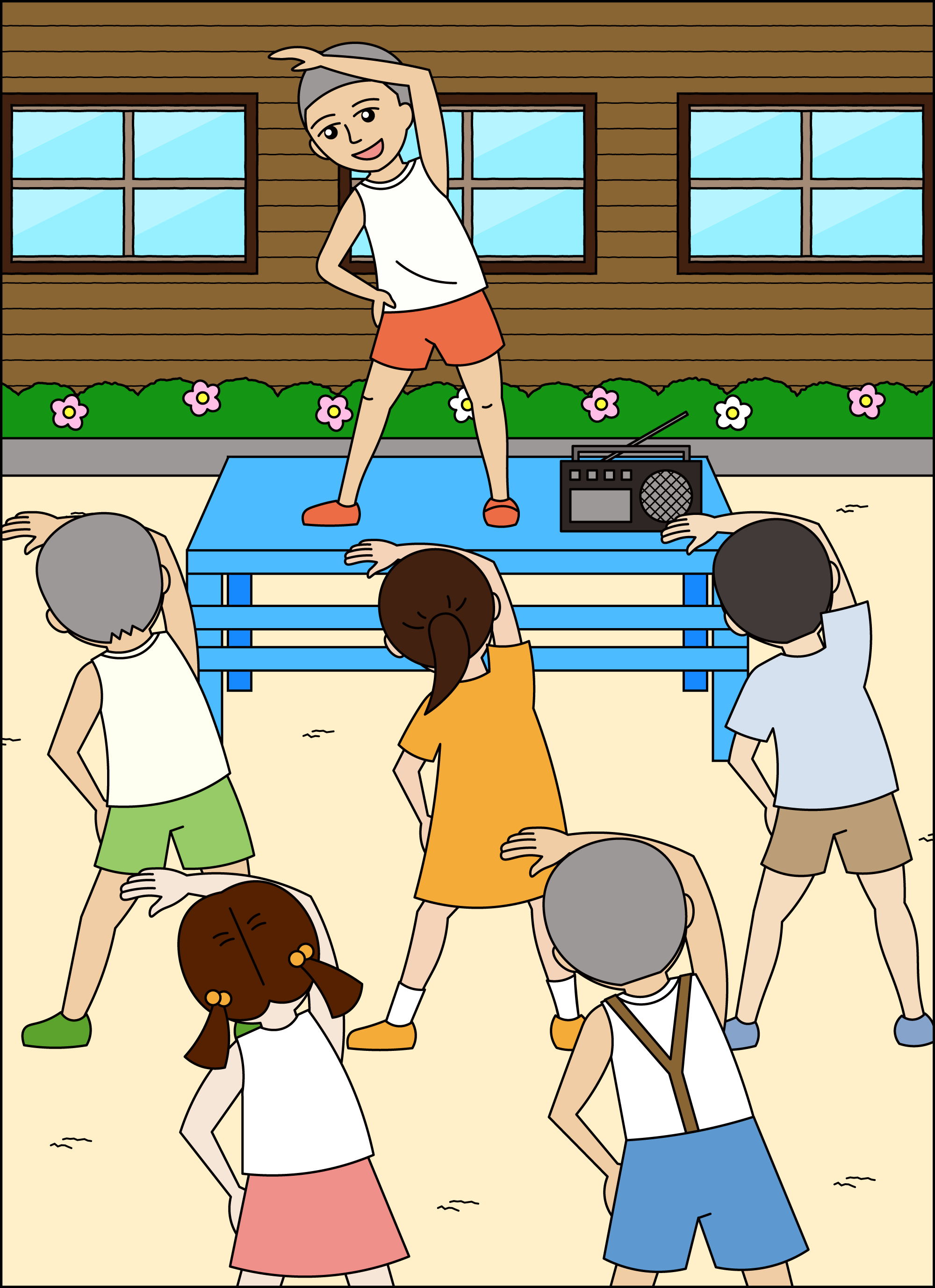 ラジオ体操をする高齢者のイラスト - ONWAイラスト。