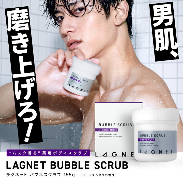 楽天市場 LAGNET ラグネット バブルスクラブ 155g シトラスムスクの香り 薬用 2way メンズ ボディスクラブ ボディソープ ニキビ予防体臭予防 男性 肌 モテ肌 ニオイ ケア マッサージ 無添加 : E!Choice 楽天市場店。