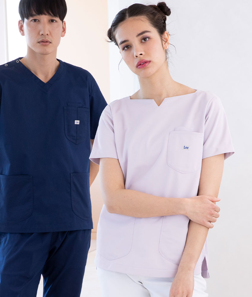 スクラブ 白衣 医療 Lee リー レディース 女性用 半袖 LMS43002 医師 医者 看護師 ナース ナース服 研修医 医療用 人気 ポケットストレッチ 伸びる 抗菌 防臭 ワークウェア 病院 小児科 リハビリ 介護 可愛い かわいい おしゃれ 動きやすい。