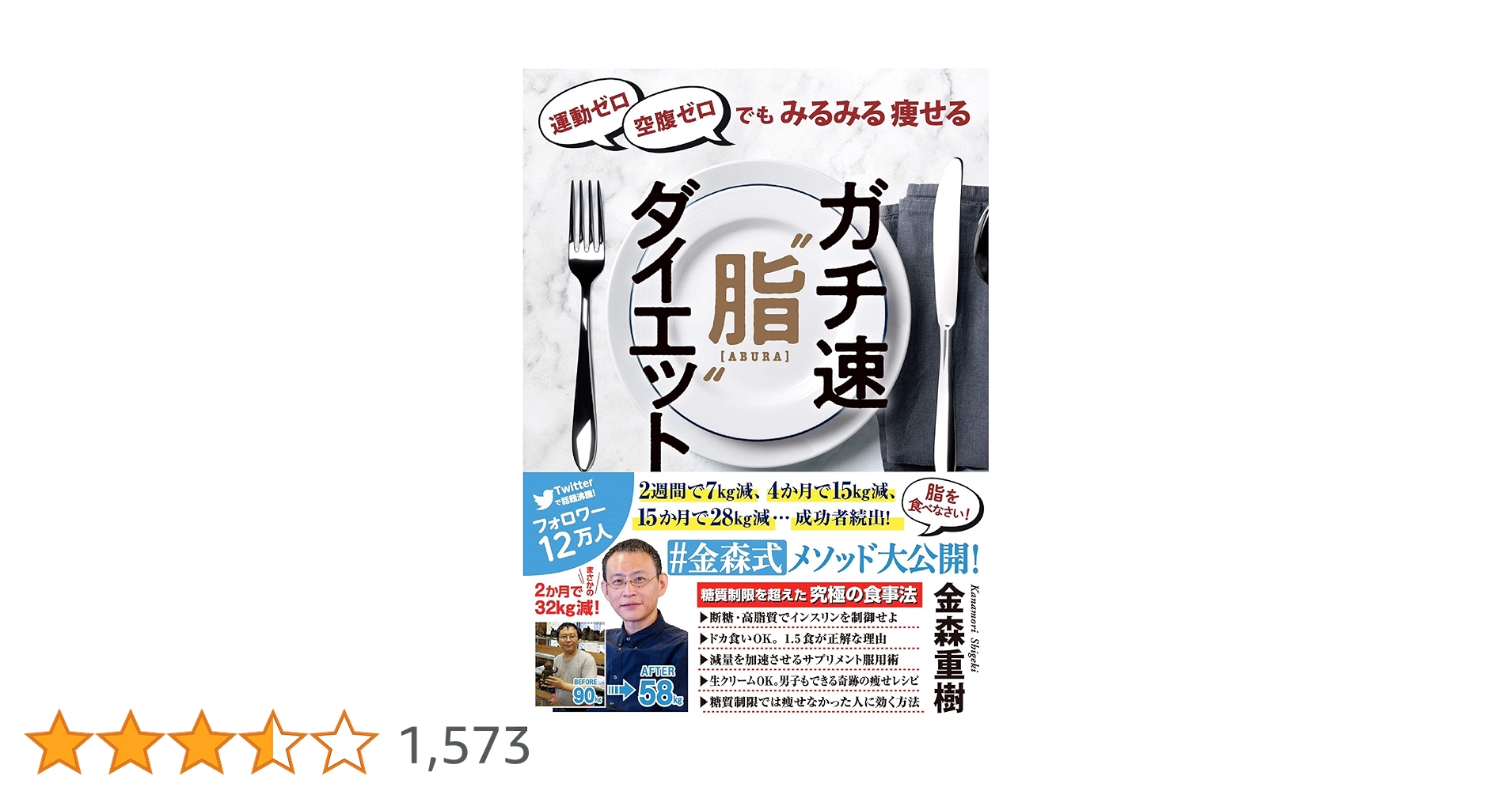 運動ゼロ空腹ゼロでもみるみる痩せる ガチ速“脂"ダイエット金森 重樹 本通販Amazon。