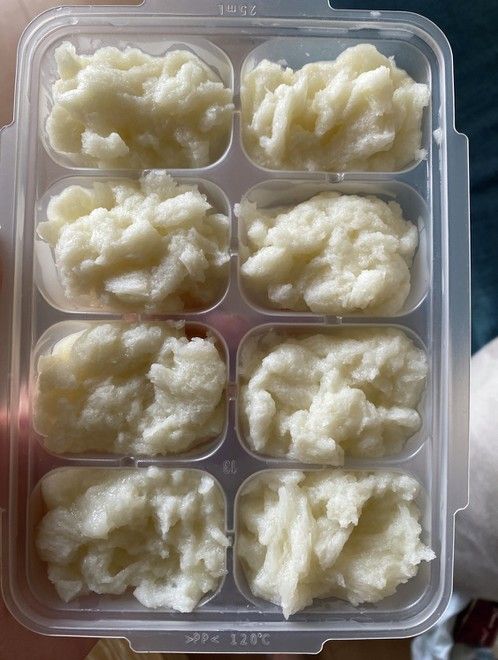 パン粥✨@erika__0630 さんの投稿をお借りしました❣️ . 離乳食初期memo🌱 パン粥の作り方𓎩𓌉𓇋 ※あくまでも私のやり方です! 今回は 6枚切 1枚で作りました。 20g×8 出来上がり 𓌉◯𓇋 パン粥はうどんをクリアしたらOK◎今回は、食べる時にミルク粥にしたりと。