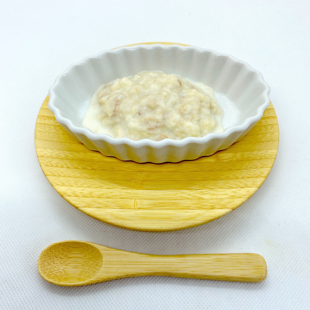 その他のレシピはこちらから▽@maachi_mama_gohan, 〖離乳食初期パン粥〗, 📝材料 リッチェルトレー25ml 約6個分 ,✔︎食パン1枚,超熟国産小麦を使ったよ🍞✨ , ✔︎水適量, 🍳作り方, ①パン耳は取り除いて、細かくちぎる。,②耐熱容器にちぎったパンと浸るくらいの水を入れて、600w30秒加熱。, ③ すり潰すかブレンダーにかけて完成。, 💡注意事項,。