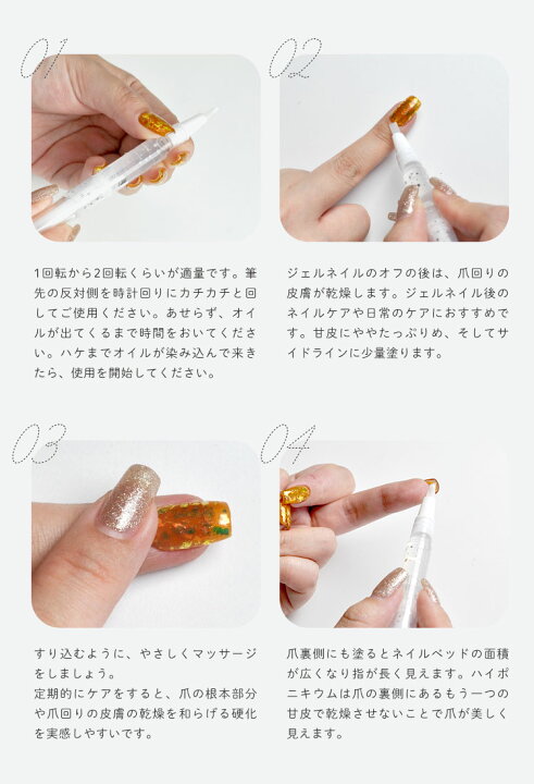 ネイルオイルペン☆爪のセルフケアに ペンタイプ ペン 爪 美容液 ネイル オイル 美容液ネイル ネイルケア グッズ ネイルケアオイル 爪ケア 自爪二枚爪 補修 甘皮 ささくれ 持ち運び お出かけ 保湿 国産 プレゼント ギフト - ease-aroma-shop。