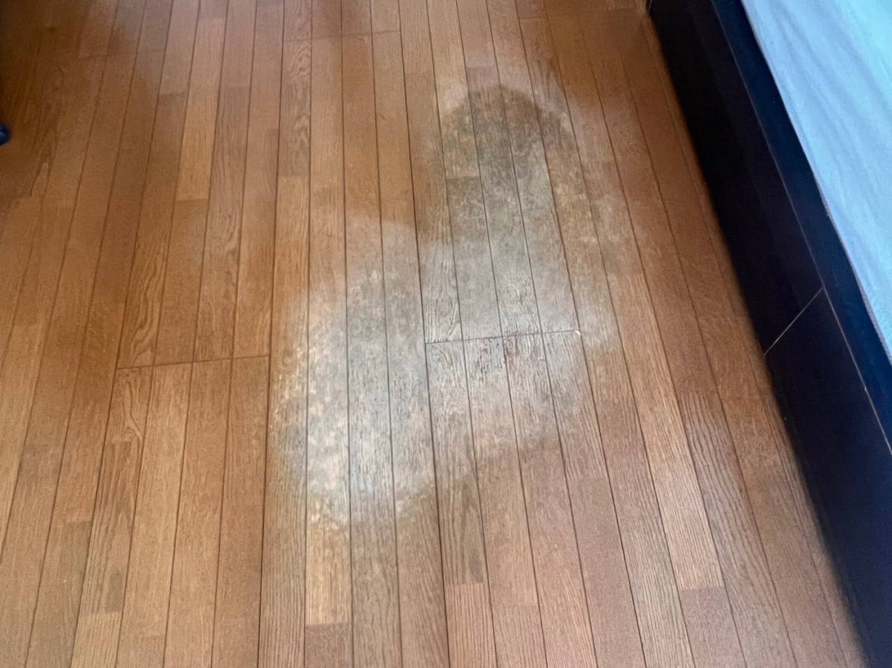 フローリングにカビ?! カビ・シミを除去し補修して全く分からなくなりました! 大阪府豊中市住宅キズ補修・リペア補修施工大阪のオカショウ・リテック。