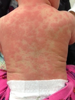 円型状の発疹が多発している湿疹野田市 小児科 千葉県 こどもの花粉症 こどもの漢方 喘息 アトピー性皮膚炎 アレルギー 結節性痒疹たんぽぽこどもクリニック。