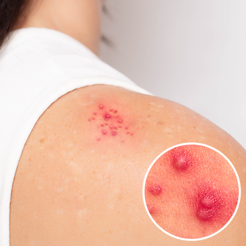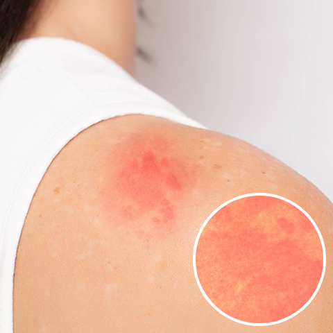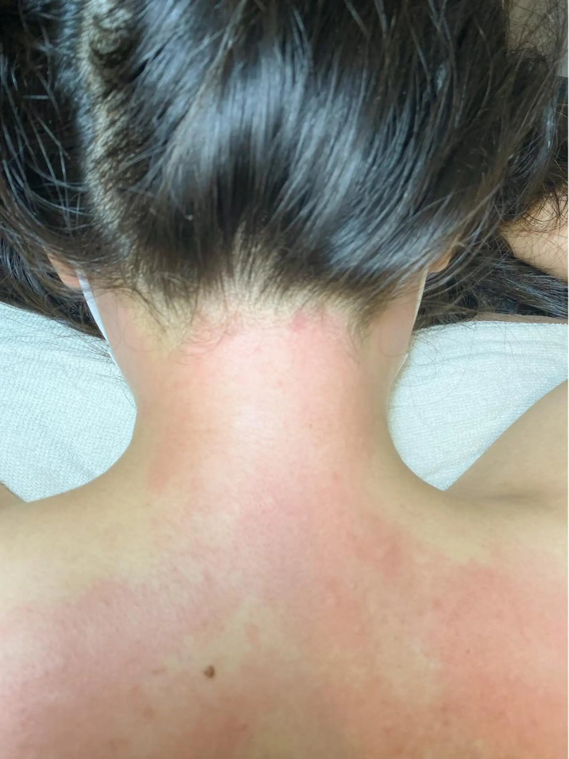 背中・肩の膨疹皮膚トラブルの状態チェックヒフシルワカル。