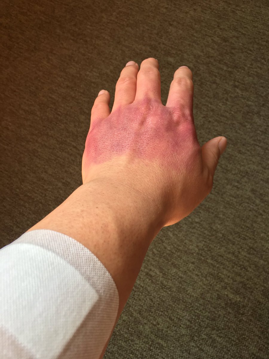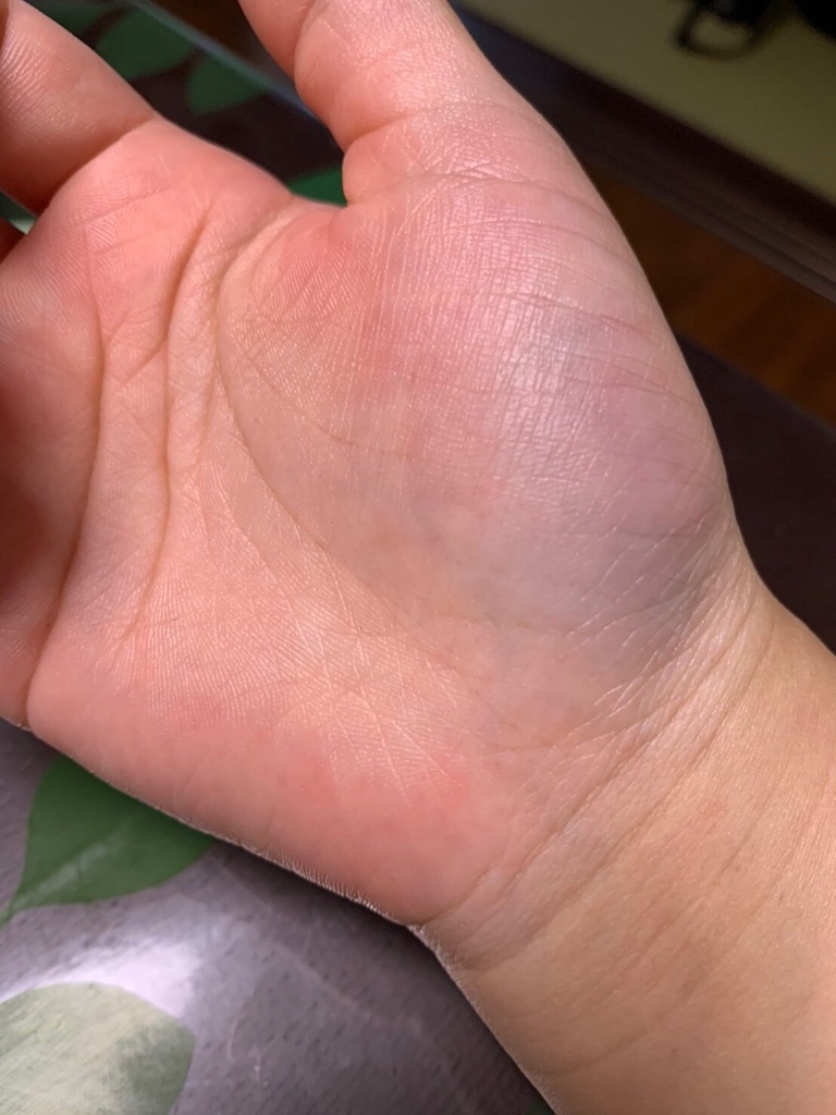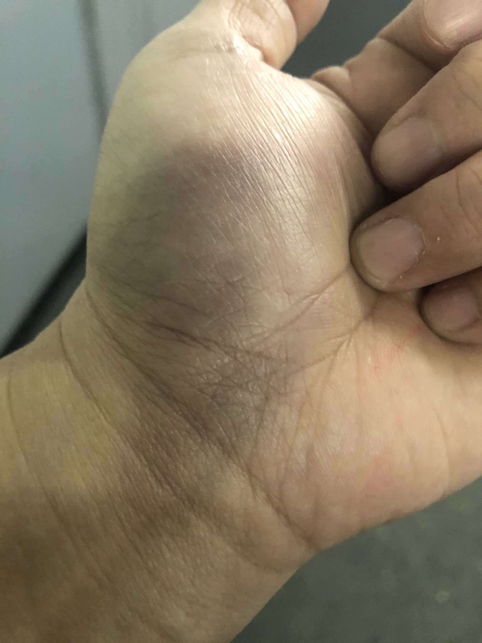 ena on X: "さっき買い物から帰って 気づいた 急に手に違和感 みると内出血? っぽくなってる 触るとジンってなる 力が入らないこれ何ですか??手のひら内出血 https:t.co L7Kaw7sX2Y"X。
