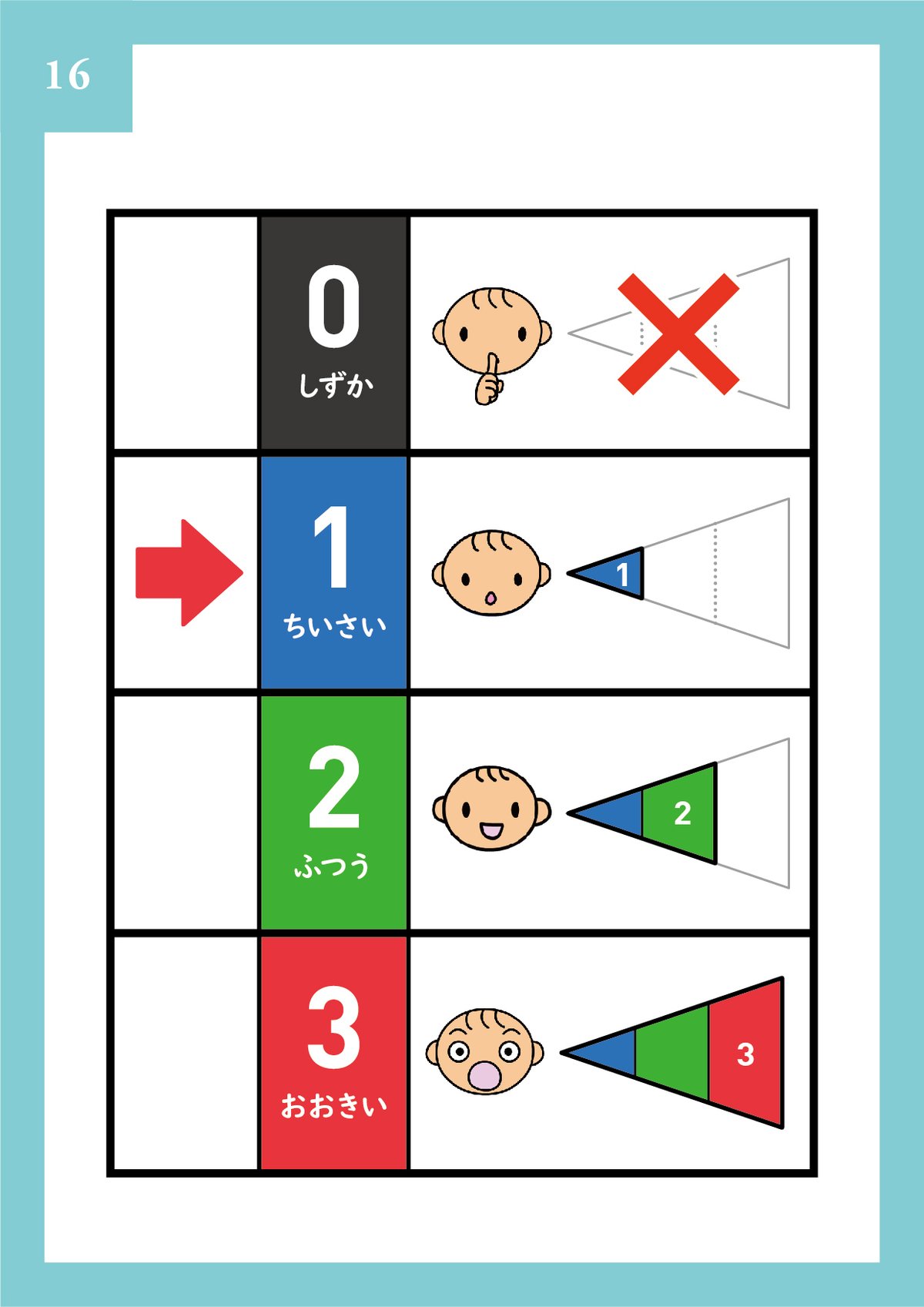 声のものさし 大きさ12345シート もう「うるさい!」「静かに!」と叱らなくて済む掲示物Pay ID。